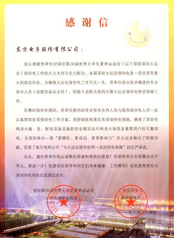 第26届世界“大运会”致公司的感谢信